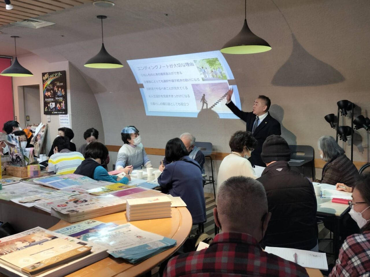2025年8月7日 投稿ナビゲーション 前後 多摩区SDC主催のエンディングノート講座に登壇しました。 カテゴリーお知らせ この投稿をシェア twitter facebook line こんにちは 行政書士の星です 昨年12月よりスタートした多摩区SDC主催のエンディングノート講座ですが合計98名のご参加頂き盛況のうちに終えることができました。沢山の方にご参加ありがとうございました。改めて終活について関心があることがわかりました。
